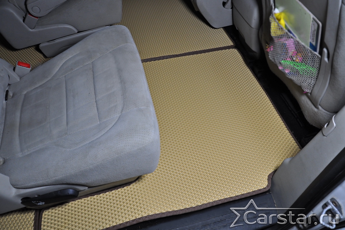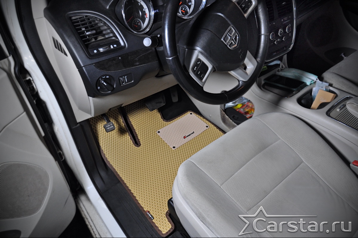Автомобильные коврики EVA Dodge Grand Caravan V (2007-2020) 2 ряд: кресла 1+1 убираются в пол – это долговечные, удобные и универсальные аксессуары, которые помогут надежно защитить салон и багажник вашего авто от пыли, грязи и влаги в любое время года.