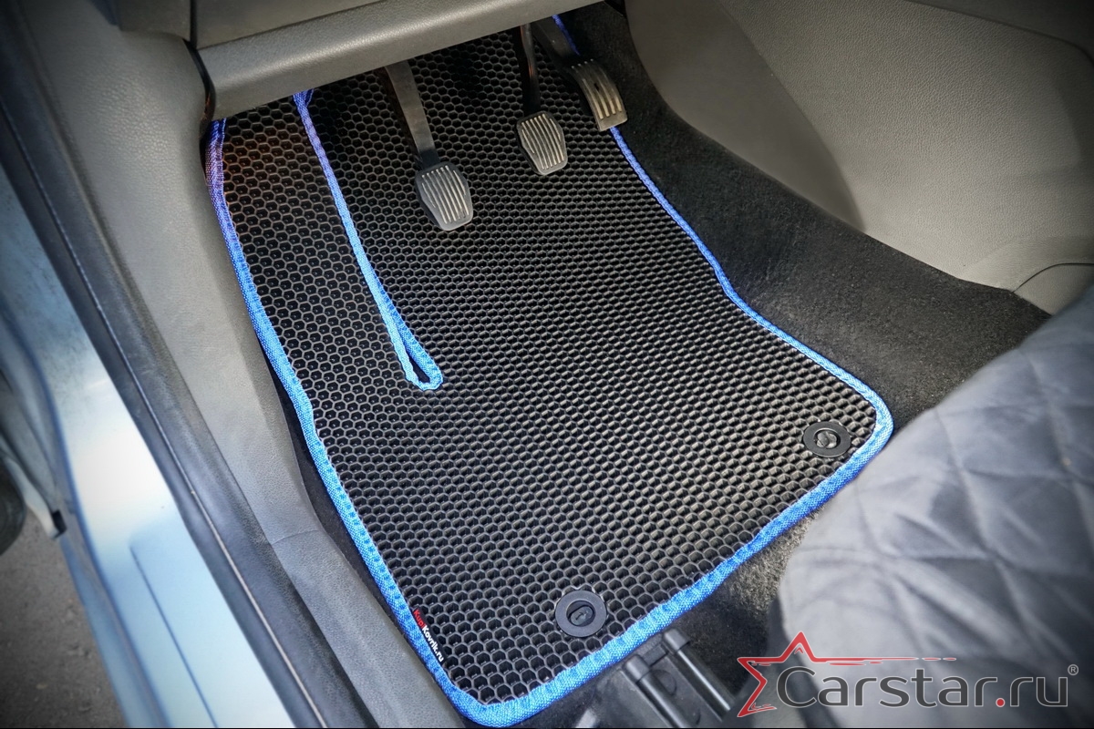 Автомобильные коврики EVA прекрасно подходят для всех существующих марок и моделей авто, здесь вы сможете заказать оптимальный аксессуар любого возможного цвета. По размерам они больше, чем стандартные резиновые коврики, поэтому покрывают максимальную площадь пола в салоне. А двойная система креплений (клипсы и липучки) позволяет надежно зафиксировать коврики в нужном месте.