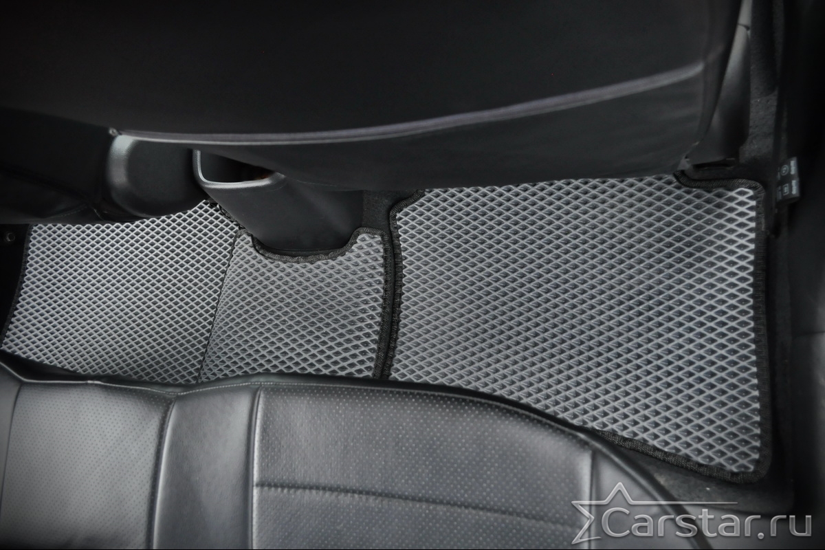 Толщина ковриков EVA составляет 10-12 мм. Глубина ячеек 7-8 мм. Такая толщина ковриков позволяет им служить довольно долго, не протираясь до 3 лет. А благодаря такой глубине ячеек коврик EVA площадью 1 кв.м. способен захватить около 3,5 л жидкости, сохраняя в чистоте вашу обувь и обивку салона.