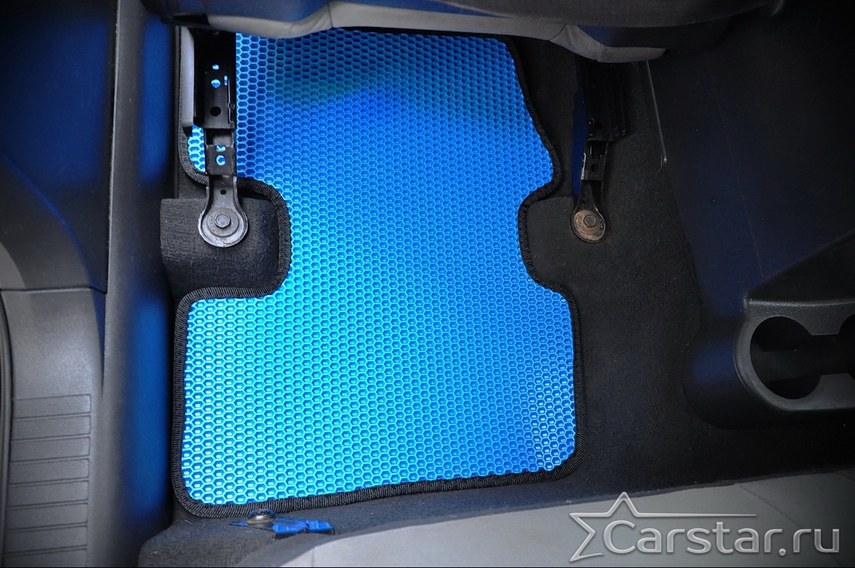 Толщина ковриков EVA составляет 10-12 мм. Глубина ячеек 7-8 мм. Такая толщина ковриков позволяет им служить довольно долго, не протираясь до 3 лет. А благодаря такой глубине ячеек коврик EVA площадью 1 кв.м. способен захватить около 3,5 л жидкости, сохраняя в чистоте вашу обувь и обивку салона.