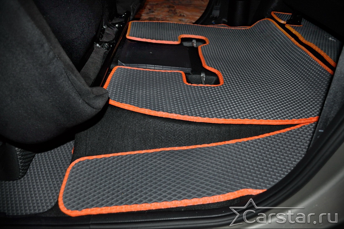 Автомобильные коврики EVA прекрасно подходят для всех существующих марок и моделей авто, здесь вы сможете заказать оптимальный аксессуар любого возможного цвета. По размерам они больше, чем стандартные резиновые коврики, поэтому покрывают максимальную площадь пола в салоне. А двойная система креплений (клипсы и липучки) позволяет надежно зафиксировать коврики в нужном месте.