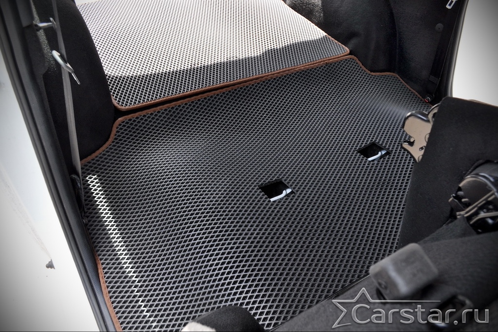 Толщина ковриков EVA составляет 10-12 мм. Глубина ячеек 7-8 мм. Такая толщина ковриков позволяет им служить довольно долго, не протираясь до 3 лет. А благодаря такой глубине ячеек коврик EVA площадью 1 кв.м. способен захватить около 3,5 л жидкости, сохраняя в чистоте вашу обувь и обивку салона.