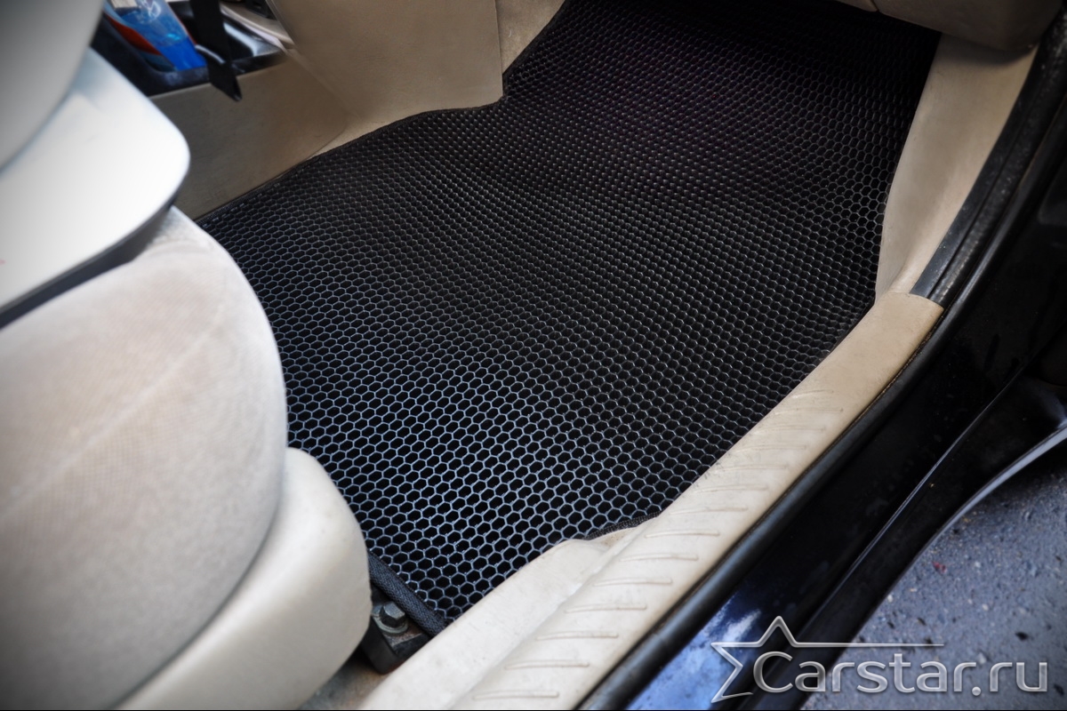 Толщина ковриков EVA составляет 10-12 мм. Глубина ячеек 7-8 мм. Такая толщина ковриков позволяет им служить довольно долго, не протираясь до 3 лет. А благодаря такой глубине ячеек коврик EVA площадью 1 кв.м. способен захватить около 3,5 л жидкости, сохраняя в чистоте вашу обувь и обивку салона.