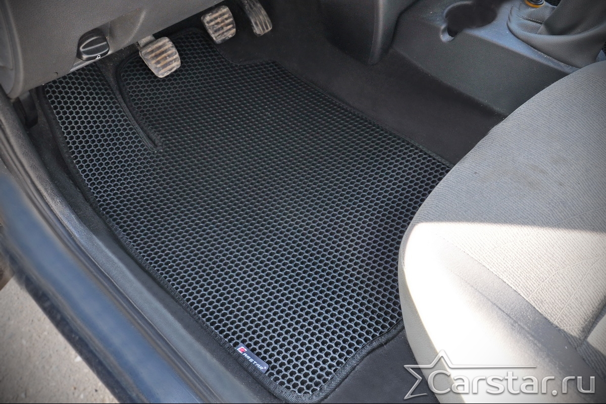 Толщина ковриков EVA составляет 10-12 мм. Глубина ячеек 7-8 мм. Такая толщина ковриков позволяет им служить довольно долго, не протираясь до 3 лет. А благодаря такой глубине ячеек коврик EVA площадью 1 кв.м. способен захватить около 3,5 л жидкости, сохраняя в чистоте вашу обувь и обивку салона.