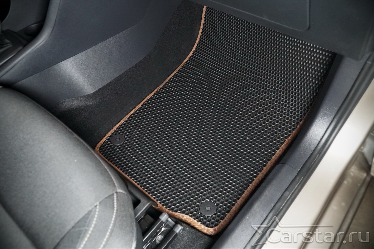 Коврики EVA надёжно крепятся с помощью оригинальных систем фиксации. Благодаря клипсам и липучке коврики защищены от смещений, что обеспечивает комфорт и безопасность вождения. Максимальное удобство также достигается точными, улучшенными лекалами для каждого автомобиля.