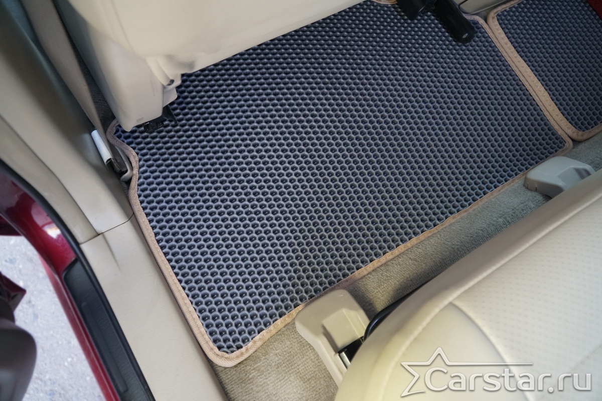 Толщина ковриков EVA составляет 10-12 мм. Глубина ячеек 7-8 мм. Такая толщина ковриков позволяет им служить довольно долго, не протираясь до 3 лет. А благодаря такой глубине ячеек коврик EVA площадью 1 кв.м. способен захватить около 3,5 л жидкости, сохраняя в чистоте вашу обувь и обивку салона.