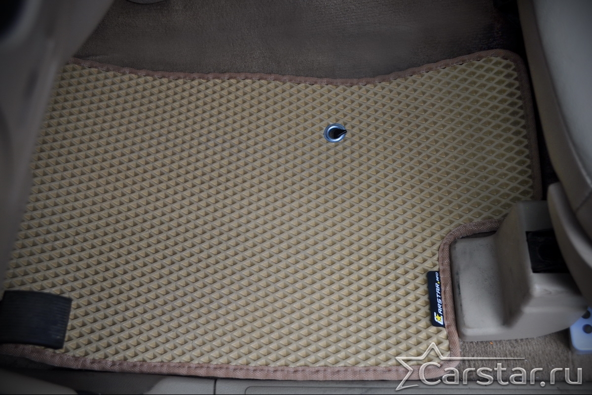 Текстильные коврики надёжно крепятся с помощью оригинальных систем фиксации. Обратная сторона имеет противоскользящее покрытие, что обеспечивает защиту от смещений и безопасность. Максимальное удобство достигается точными лекалами.
