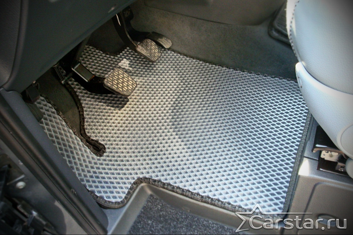 Текстильные коврики надёжно крепятся с помощью оригинальных систем фиксации. Обратная сторона имеет противоскользящее покрытие, что обеспечивает защиту от смещений и безопасность. Максимальное удобство достигается точными лекалами.
