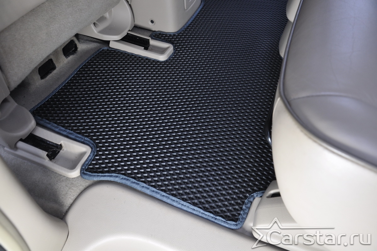 Текстильные коврики надёжно крепятся с помощью оригинальных систем фиксации. Обратная сторона имеет противоскользящее покрытие, что обеспечивает защиту от смещений и безопасность. Максимальное удобство достигается точными лекалами.