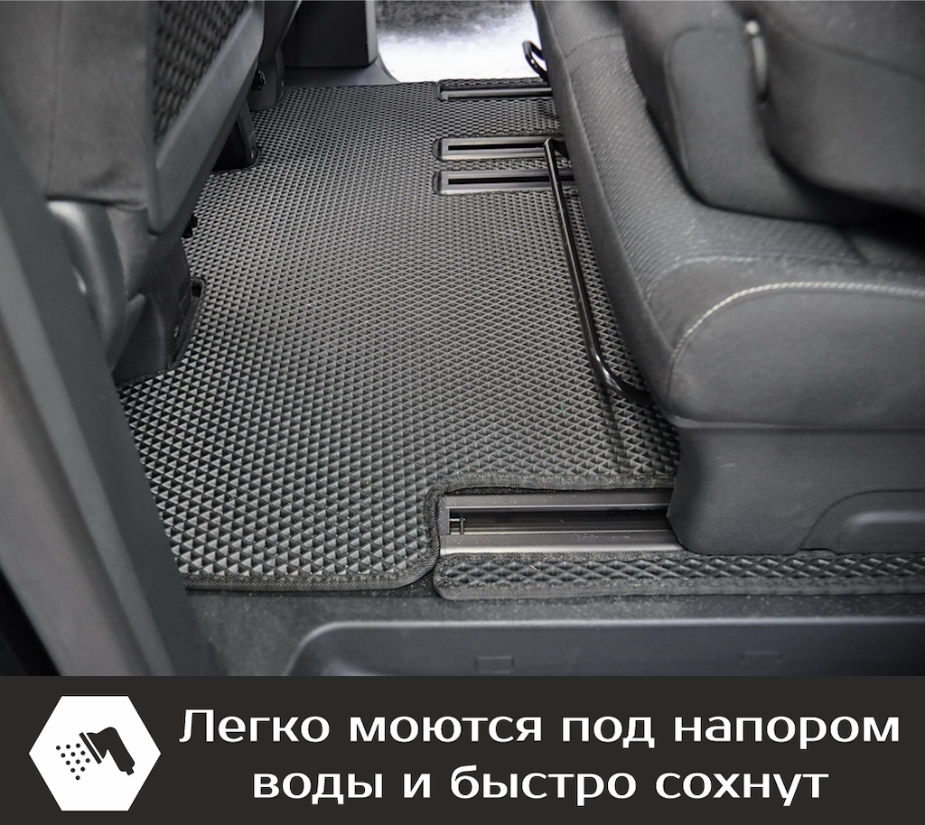 Нижняя часть ковра изготавливается из термопластичной резины с шипами 2-3 мм по всей поверхности, что предотвращает скольжение коврика по салону автомобиля.